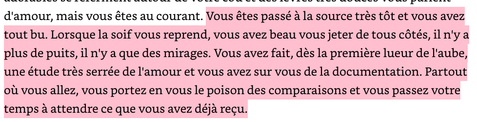 Partout où vous allez, vous portez en vous le poison des comparaisons et vous passez votre temps à attendre ce que vous avez déjà reçu.