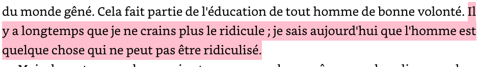Il y a longtemps que je ne crains plus le ridicule ; je sais aujourd'hui que l'homme est quelque chose qui ne peut pas être ridiculisé.